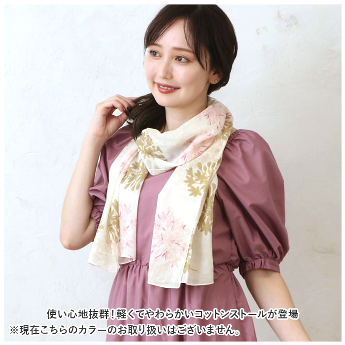 | 商品説明 | ・・使い心地抜群!軽くてやわらかいコットンストールが登場。 ・【ストレスフリー】 ・ふんわり軽いコットン100%素材。ハンカチ代わりにも使える優しい肌触り。 ・【ロングシーズン活躍】 ・通気性が良く、汗ばむ季節も快適。 ・【持ち運びにも!】 ・折りたためばコンパクトサイズに!バッグの中でもかさばらないのが嬉しい♪ ・【使い方いろいろ】 ・肌寒い日や紫外線が気になる日は首に巻いて。肩にサッと掛ければ冷房対策に。 ・【お手入れラクチン】 ・洗濯ネットに入れて自宅で洗濯OK! ・【コーデのアクセントに♪】 ・おしゃれな花柄やレモン柄をラインナップ。 |