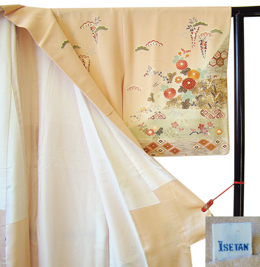 | 商品説明 | こちらのお品は「袷」ですので10月から5月までお召頂ければと思います。 とてもしなやかで柔らかな手触りの着心地良い重めの上質な極上一越地の生地、 灰梅色地に柳鼠、枯草色ぼかしに松竹梅や花草、鹿の子、花亀甲、青海波、七宝文等の 本加工染に金彩加工仕立てに金糸の縁取り入り、 気品に満ち溢れた彩りが正統派のお着物として一枚は欲しい逸品の素敵なお着物です。 八掛は共色に柄入り(正絹)、幅広い年代の方にお召頂けます。 |