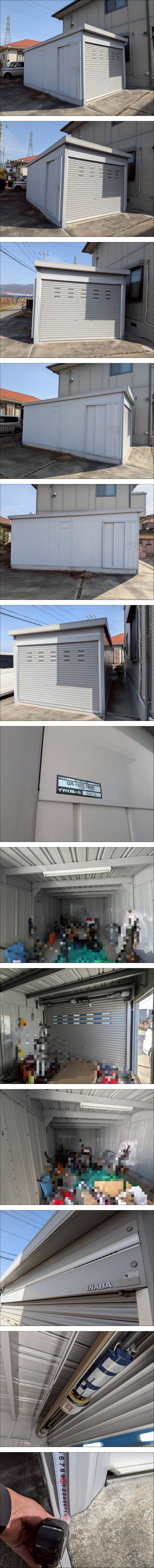 | こちらのプレハブは落札者様にて現地で解体・引取り限定となります。 日程は3月16日~3月30日までの平日にてお願い致します。 場所は山梨県笛吹市、2トントラックは横付け可能です。 庫内のぼかしの残地物はない状態での引き渡しとなります。 正面シャッター脇の柱を斫りにて取る場合は斫り跡の補修は不要です。 電気は使えない状態です。 シャッターは電動と手動とに切り替えが可能です。横に扉があります。鍵あります。 【外寸法(本体)】 3070mm×5315mm×2360 | |||