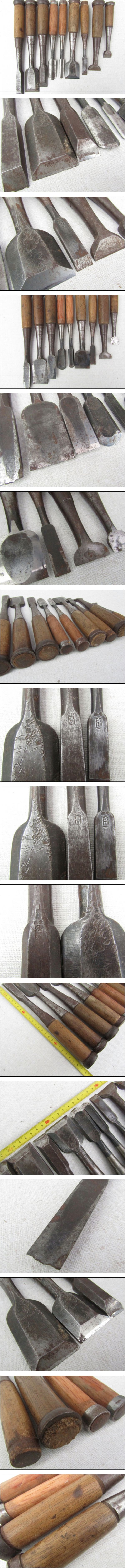 ■■⑤ 大工道具 のみ 叩きのみ 鑿 正成他 在銘 サイズ種類色々まとめて9本■■ | |||