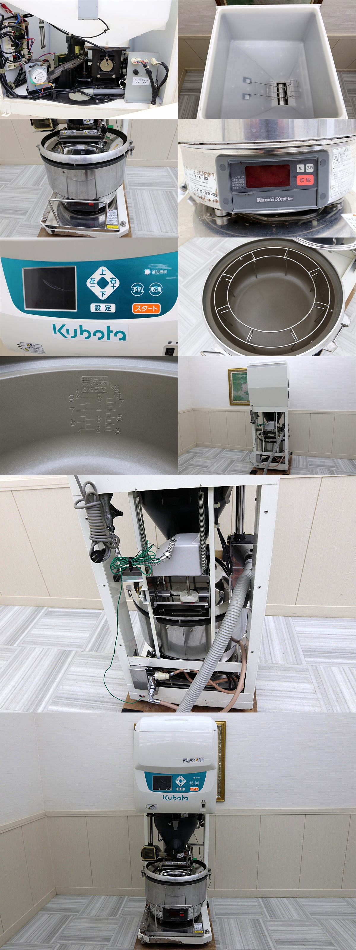 | ★ご覧いただき誠にありがとうございます★ ●メーカー:クボタ ●型式:KR902NA ●炊飯釜:RR-50GS2 ●ガス種:LP(プロパンガス) ●電源:100V (50/60Hz) ●設定米量:3.6(2升)4.5(2.5升)5.4(3升)6.3(3.5升)7.2(4升)8.1(4升)×2、9.0(4升)×2 ●最大処理量:9.0L(7.5kg) ●標準精米時間:9.0L = 2:43分 ●炊飯開始:手動点火 ●貯米量:60Kg ●定価:¥1,921,920 ●年式:2014年 ●付属品:取説(コピー) ●サイズ約-横幅-54×奥行-64×高さ-165cm ■清掃・動作点検済。動作保証品。全体的に美品ですが、下部にサビ、アジャスター固着あり。炊飯釜は超美品!新しいものに交換されています。 炊飯の手間を省く画期的マシンです。オートメーションでいつでもおいしい安定したお米が炊けます。1度使うと手放せません。新品価格は高額です。ご検討宜しくお願い致します! ※取り付けは必ずホシザキ等の専門業者でお願いいたします。 以下メーカーサイト抜粋 ●計量~洗米~までを自動で行います。(点火は手動タイプ) ●手順通りにボタンを押せば誰でも均一な仕上がりで炊飯ができます。 ●基本機能 1.貯米機能:米不足ランプによる貯米量不足表示 2.計量機能:米使用量を積算表示 3.洗米機能:洗米程度の選択・無洗米対応プログラム 4.浸漬機能:浸漬時間を0~60分迄設定 5.水加減機能:常に均一の炊き上げを保つ為、水加減を自動微調整(16段階) 6.自動供給機能:構えの米水の自動供給 7.予約機能:炊飯スタンバイ予約、炊き上げ時間予約 8.炊飯機能 9.ムラシ機能:ムラし時間予約も可能、炊き上げブザー連絡 ●あとはすべて写真にてご審査願います。写真には写りきらない、よごれやダメージ、詳細部分の、記載ミスなどがもしあっても、その旨のクレームはご勘弁下さい。上記内容をご理解頂き、ノークレーム・ノーリターンでお願いいたしいます。 |