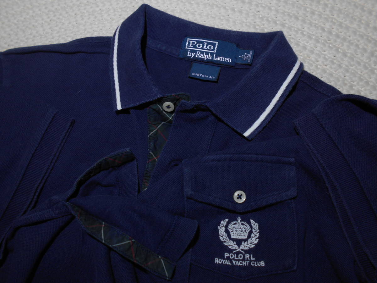 | P754お洒落!!■ラルフローレンYACHT★濃紺★ライン入りポロ■L | |||||||||||