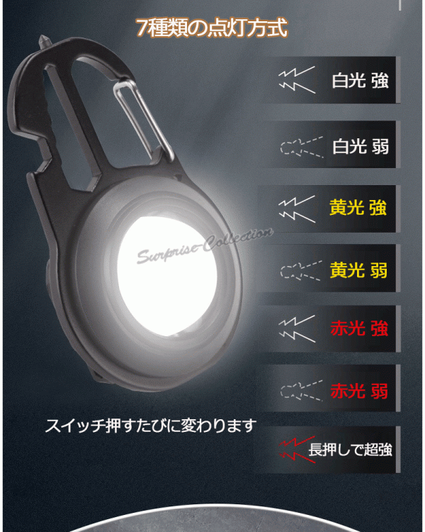 光調節 7段階(白光強、白光弱、黄光強、黄光弱、赤光強、赤光弱、超強)
