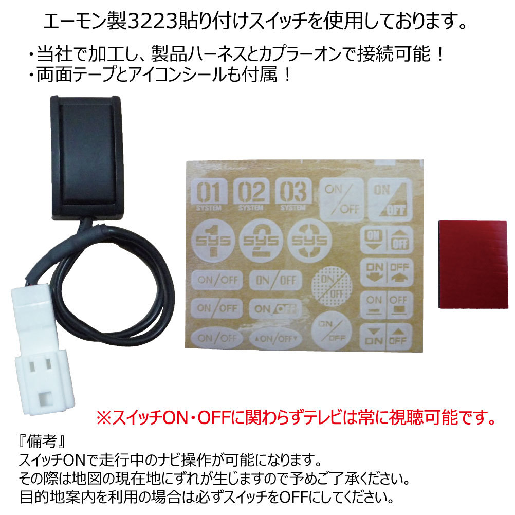 ・走行中もテレビ、DVDが見れる◎ ・走行中もナビ操作が可能◎ ・カプラーオン◎ ・純正コネクター採用◎ ・送料無料◎ ニッサン メーカーオプションナビ用 走行中にテレビが見れてナビ操作が可能になるキット! 【対応車種】 (メーカーオプション地デジ内蔵HDDナビ装着車) ・H20.12-H25.11 エクストレイル T31 ・H22.8-R2.9 エルグランド E52系 ・H20.12-H24.11 キューブ Z12系 ・H21.11-H28.8 GT-R R35 ・H24.5- シーマ HGY51 ・H22.6-H26.7 ジューク F15系 ・H22.1-H26.1 スカイライン V36系 ・H21.7-H28.7 スカイラインクロスオーバー J50系 ・H21.1-H22.11 セレナ C25系 ・H22.12-H25.12 セレナ C26系 ・H21.9-H26.1 ティアナ J32系 ・H21.6-H24.9 ティーダ/ティーダラティオ C11系 ・H21.9-H26.3 デュアリス J10系 ・H21.11- フェアレディZ Z34系 ・H21.12- フーガ Y51系 ・H21.6-H24.12 ブルーバードシルフィ G11系 ・H23.2-H27.3 ムラーノ Z51系 ※上記車名・年式のメーカーオプション地デジ内蔵HDDナビ装着車に取り付け可能。 ※ディーラーオプション(販売店)・社外ナビは取り付け不可。 【製品概要】 ●走行中もテレビ・DVD映像が見れる。 ※DVD再生機能付きに限る。 ●走行中もナビ操作(目的地設定等)が可能。 重要: 走行時のナビ操作(目的地設定等)を行う場合にのみ製品のスイッチをONにします。 その間だけ地図の自車位置にずれが生じます。(スイッチOFF→GPS受信で正しく補正されます。) →スイッチON・OFFに関わらずテレビは常に視聴可能です。 テレビを見るだけならスイッチ操作は必要ありません。 走行時にナビ操作の際の地図のずれは回避出来ません。 他社製品も含め、地図のずれが無くスイッチ操作のいらない製品は存在しません。 ●カプラーオン取り付け。 ●お好みの場所に設置可能な貼り付けスイッチ。 ※エーモン製3223を使用。(ケーブルの長さは約1.2m) ●リアカメラ類・ETC等も正常動作。 ●車種別のパネル分解説明画像が当社HPで閲覧可能。 ※車種・年式により画像が無い場合もございます。 ●メーカー製純正部品を使用し1年間の製品保証。 ※安価なコピーコネクター、海外製造品が多くみられますが、純正採用部品を使用し 社内で製造・検査・発送を行いディーラー様にも信頼頂いている製品です。 ディーラー様、業者様いつもごひいき頂きましてありがとうございます。 【注意事項】 運転者の方が走行中にテレビ画面の注視・ナビ操作を行う事は道交法により禁じられております。 運転者以外の方が視聴及びナビ操作を行う事は問題ありませんので 使用の際は予めご理解願います。 適合間違い、お客様理由での返品・交換・キャンセルはお受け出来ませんので ご不明な場合は必ずご注文前にメールにてお問い合わせください。 当製品は1年間の製品保証(当社の規定により)がございますが、 当製品以外の車両及びそれらに付随する機器等の不具合、故障、 製品脱着費用、交通・運搬費等につきましては当社では一切責任を負いません。 自己責任の上、当製品をご使用、お取り付けください。 ご使用、お取り付けされた時点でこれらを承諾したものと致します。 (製品番号:NNC-004) |