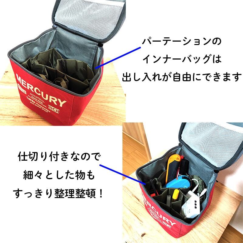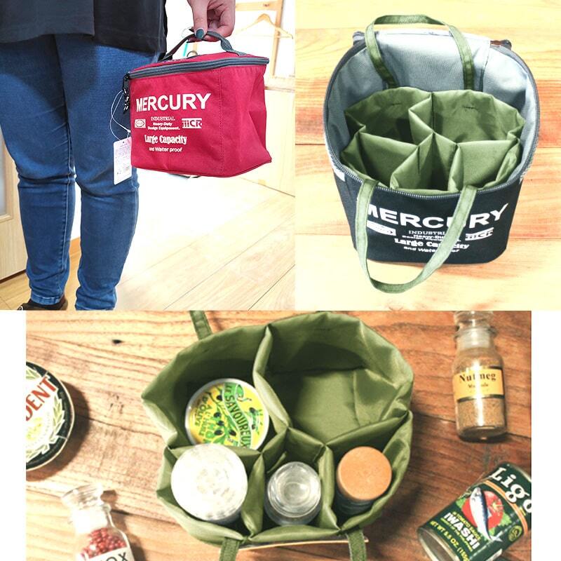 | 商品説明 | 「マーキュリー パーテーションバッグ バーガンディ」 マーキュリーのおしゃれなパーテーションバッグです! アウトドア用途でスパイスバッグが人気です。調味料を仕切りケースに整理して入れ、持ち運べます。 インナーバッグが付属しており、パーテーションのインナーバッグとアウター出し入れ自由です。 インナーバッグにもマーキュリーのワッペンがランダムについているので、外に出しておいても様になります。 パーテーションをとって、大きめのものを自由に入れることもできます。 蓋部分にもメッシュのポケットがついているので、こちらも便利にお使いいただけます。 アウトドアはもちろん、ご自宅での収納などマルチに活用できること間違いなしです。 プレゼントにもいかがでしょうか? |