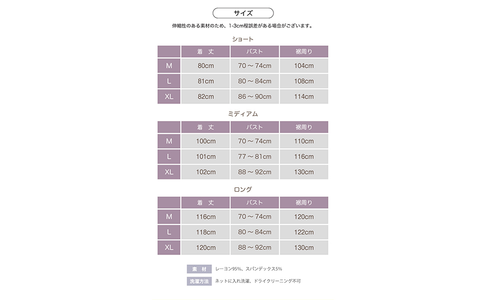 M 着丈:100cm バスト:70~74cm 裾周り:110cm
