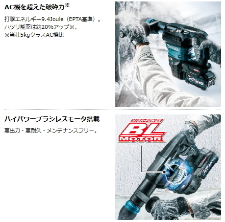 ハツリ能率は約20%アップ※。※マキタ5kgクラスAC機比
