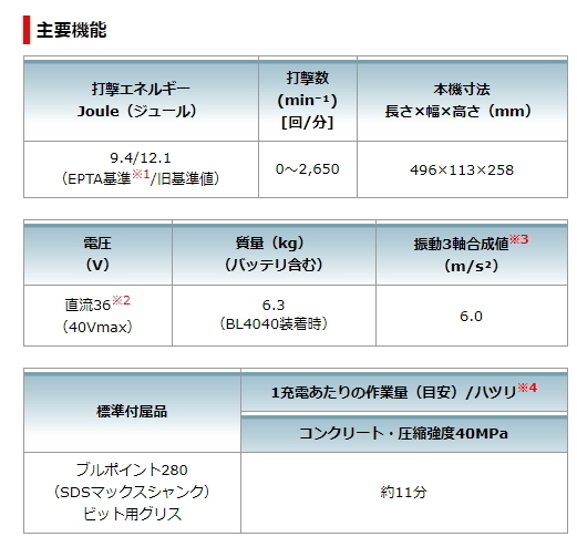 打撃エネルギー9.4/12.1joule (EPTA基準/旧基準値)