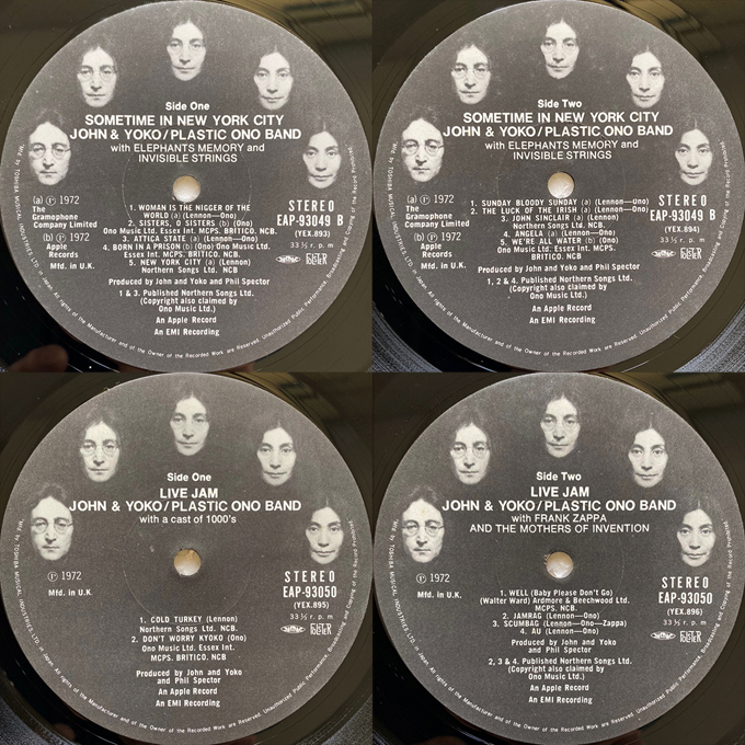 ジョンとヨーコ他「Some Time in New York City」2LP/1972年 東芝音工(Apple) EAP-93050 STEREO 全16曲 当時の定価3000円 特製スリーブ黒と白の2種付 見開き4面の歌詞・対訳カード付 自由の女神の小カード付 帯無/A~C面:ジョンとヨーコ Plastic Ono Band With Elephant's Memory And Invisible Strings D面:ジョンとヨーコ Plastic Ono Band With The Mothers Of Invention/見開き4面のジャケットは経年のスレ・黄ばみ・角打ちなどあります。見開き左側の底に割れがあります。4面のカードは黄ばみ少しありますが良好。スリーブは黒の方は良好ですが、白の方は黄ばみとシミが強く出ています。両方抜けはありません。自由の女神は黄ばみシミあります。レコード盤は目視では光沢がありスレ・小キズ程度で美盤。出品に際してはクリーニングと全曲試聴しています。レコード特有のストレッチノイズ静音部に少しありますが、気になるキズノイズはわずか(再生システムによって変わりますのであくまで目安です)/50年以上前の古いレコードですので神経質な方には向きません。ノークレーム・ノーリターンでお願いします/送付はゆうパック80サイズ持ち込み(120円割引)/内袋・外袋を新しくして専用ダンボールにて大切にお送りいたします/最後に明らかに悪評の多い方は「トラブル防止」のために入札後に削除する場合がございます。| 出价者 | 信用 | 价格 | 时间 |