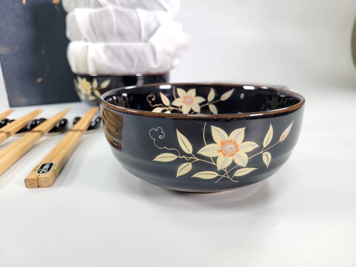 【送料無料・長期保管未使用】有田焼 慶斎 多用丼 小皿 箸置き 箸 5客セット