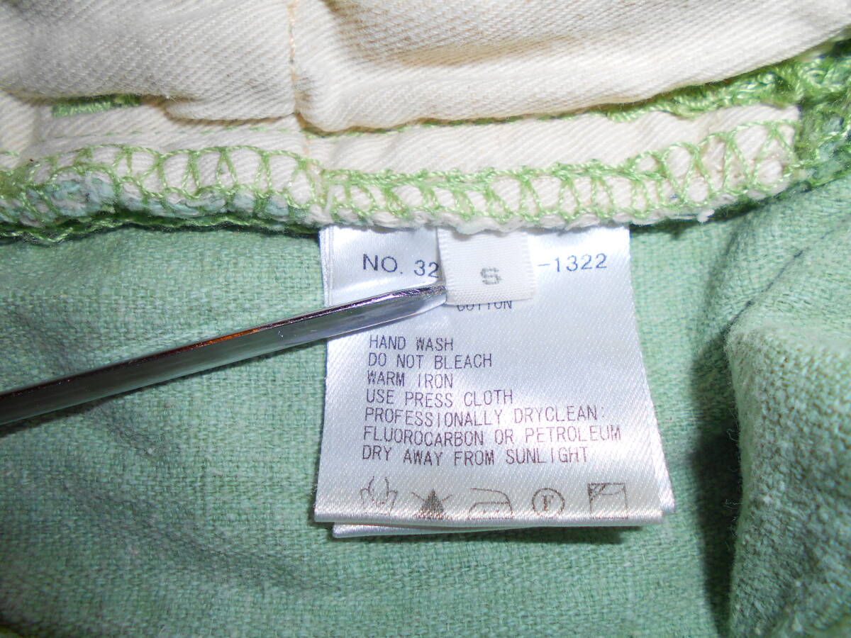 ◆サイズ表記 S ◆カラー ライトグリーン系 ◆素材 コットン100% ◆素人寸法ですが、ウエスト80cm レングス(股下から裾)5cmです ◆若干の誤差は、お許しください ◆当社実寸測定方法はこちらでご確認下さい ◆画像は実際の色とデジカメ、モニターの性能上多少異なる場合があります ◆左ヒップポケットに薄汚れ箇所があります。その他、特に気になるシミ、ダメージ等はありませんが、used品の為クレーム、返金はご遠慮ください |