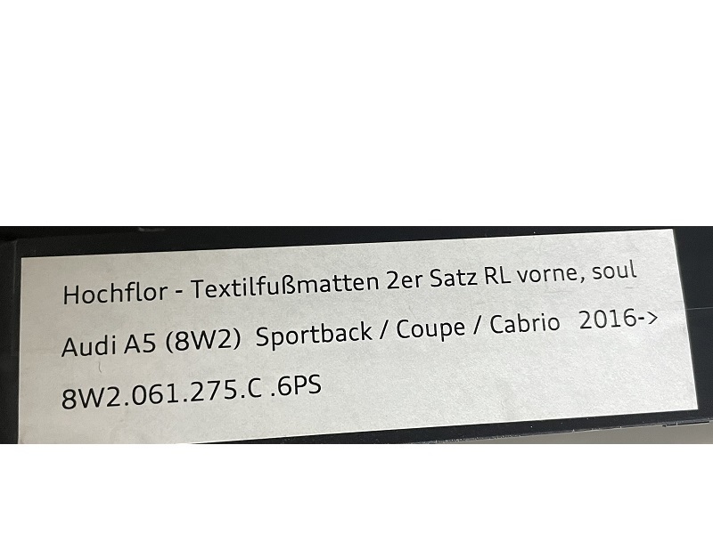 ■【税込価格】の売り切りです! ■【 未使用品!・在庫あり! 】 ■【 A5 スポーツバック(F5)・クーペ(F5)・適合年式:2019年-2025年 】 ■【 フロント左・右/1セット・「A5」エンブレム ■【 品番:8W2061275C 6PS /・右ハンドル車用 】 ■【 定価:46,200円(税込) 】 ■【 適合は下記メーカーホームページよりご確認下さい・↓↓ 】 ■【 送料:着払い(佐川急便・140サイズ) ■ Audi / アウディ 純正部品 ・コンフォートプラスフロアマット ・フロント左・右/1セット ★【 8W2061275C 6PS 】 ・パイルを基布に縫込む刺繍方式のタフテッド製法による、ボリューム感の ある上質な仕上がり ★メーカーホームページこちらをクリック | |