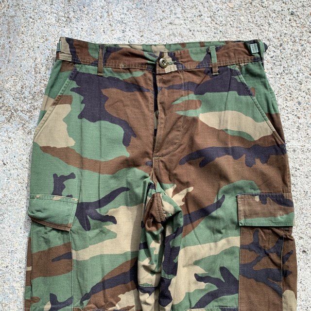 ★商品状態★ ・着用感ございますが特に目立つダメージや汚れなどは見当たりません。 ・古着慣れされている方でしたら問題なく着用していただける程度かと思います。 ★素材★ COTTON/NYLON 50/50 ★配色★ 緑系 迷彩 ★サイズ表記★ SMALL-SHORT W30インチ相当 ・実寸を参考にして下さい。 ★実寸サイズ★ ウエスト 38㎝ 股下 78㎝ 股上 30㎝ 腿幅 30㎝ 裾幅 19㎝ ・平置きにての採寸となります。 ・若干の誤差はご了承ください。 | ||||