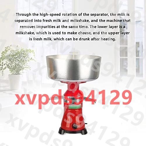ミルクセパレーターは、牛乳をクリームとスキムミルクに分離する遠心分離装置です。当社の製品は食品グレードのステンレス鋼で構成されており、安定しています。このミルクスキマーマシンは掃除も簡単で、使用後はデバイスを乾いた状態に保つことをお勧めします。家庭用にも商業用にも最適です。 仕様 材質:ステンレス鋼、アルミニウム合金 牛乳生産量 >= 80L/h 回転速度: 分 = 5000rpm;最大=11000rpm 最適速度: 8000-10000rpm ドラム内の分離ディスクの数: 12 ミルクレシーバーの容量:12L 生乳と脱脂乳の体積比調整:1:4~1:10 分離されたミルクの温度は35?40℃である必要があります。 サイズ: 50*36 センチメートル/19.7*14.2 インチ 重量: 5kg 製品には次のものが含まれます。 1 * ミルククリーム遠心分離機