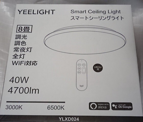 Yeelight LEDスマートシーリングライト AIスピーカー Alexa/Google アシスタント 対応 調光 リモコン付きの出品です。新品未使用品ですが購入時から箱が若干傷んでいます。この状態のまま発送させて頂きます。