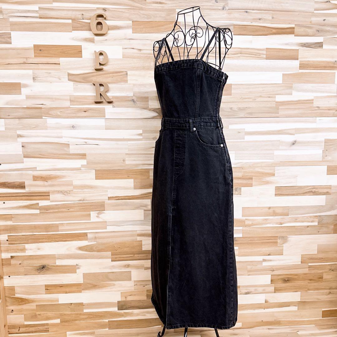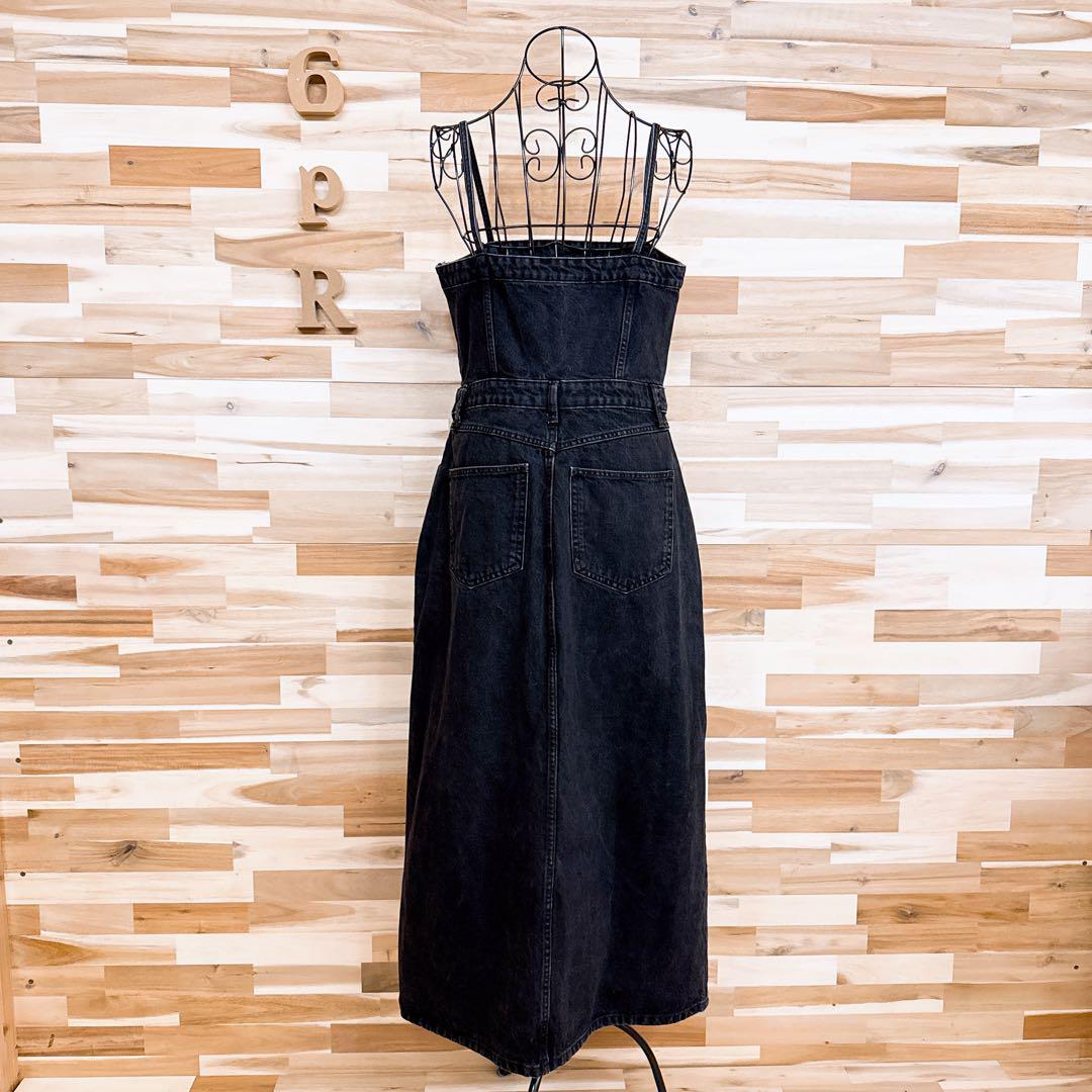 * キャミワンピ *ややハリ感のあるコットンデニム素材で、身体のラインを美しく引き立ててくれるシルエット。深みのあるブラックをベースに、ステッチやポケットがさりげないアクセントに。フロントにはスリット入りで、動きやすさもプラス。シンプルなトップスを合わせるだけで、洗練されたカジュアルスタイルを完成させてくれるZARAのワンピースです。※LGスタイラーにて除菌リフレッシュ・スチームクリーニング済みです。