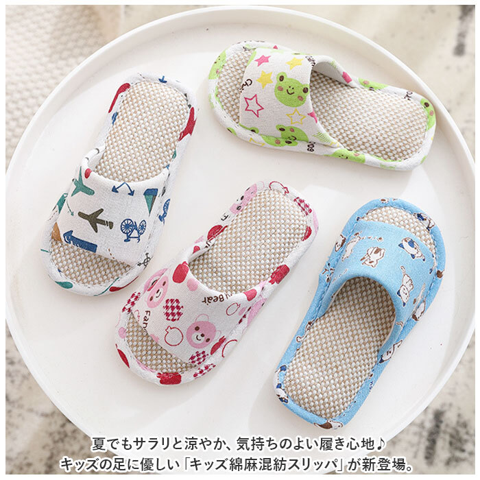 | 商品説明 | ・・夏でもサラリと涼やか、気持ちのよい履き心地♪キッズの足に優しい「キッズ綿麻混紡スリッパ」が新登場。 ・【素足よろこぶ綿麻素材】 ・足の甲に当たるアッパー裏地にはメッシュ生地、インソールには通気性のよい綿麻素材を格子状に編み込んだ生地を使用し、夏でもサラリと爽やかな肌触り。 ・【ほっこりテキスタイル】 ・足元を眺めるだけでほっこりと気持ちがほぐれる♪お子さまが大好きなアニマル柄やのりものの柄を優しい色彩で描き出したデザイン。 ・【ふんわり快適インソール】 ・ふんわりクッション+屈曲性に優れたインソールが足裏の重みを優しく受け止めて、活発なキッズの足をサポート。 ・【滑りにくいPVCアウトソール】 ・スリッパ底面にはしっかりと溝の刻まれたPVCアウトソールを採用。フローリングの床でも滑りにくく、お子さまが階段を昇り降りする時でも安心。 ・【リンクコーデも自在!】 ・・18cmから22cmまでの幅広いサイズ展開で、兄弟・姉妹でお揃いにしても可愛い! ・【子どもも大人も笑顔に♪】 ・キッズルームや玄関にさりげなく並べておくだけで、大人も子どももにっこり笑顔がこぼれる、素朴で可愛らしい絵柄をラインナップ。お気に入りを選んでね♪ |