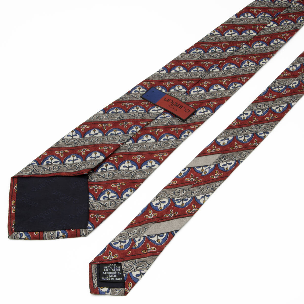 送料無料 ウンガロ ネクタイ 新品 シルク 赤 レッド グレー 青 ブルー 黄色 黒 ブラック ストライプ ブランド 珍しい イタリア製 綺麗 P242