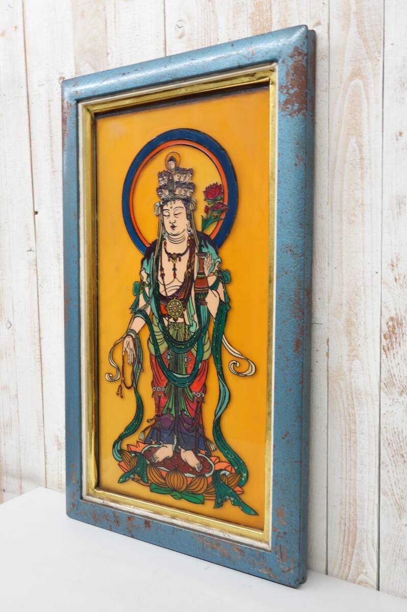 レトロ アンティーク *大型仏画 佛画 菩薩画*十一面観音菩薩 観音菩薩 かんのん エーカダシャムカ *硝子画 ガラス ステンド風
