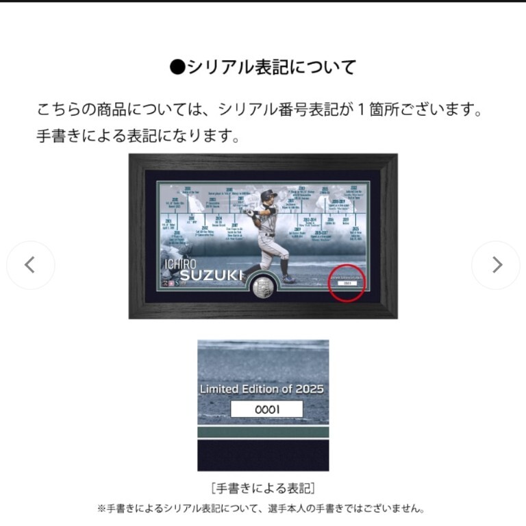 イチロー氏のMLB殿堂入りを記念した特別なコインフォトミントが、郵便局限定デザインで登場!本商品は、イチロー氏のMLBデビューから引退までの軌跡を年表で振り返るとともに、彼の勇姿を収めたタイムラインフォトミントです。さらに、殿堂入りを象徴する特別デザインのシルバーメッキコインがセットされ、高品質な仕上がりとなっています。世界2025個限定のシリアルナンバー入りで、イチローファンやMLBファン必見のコレクターズアイテム。| 出价者 | 信用 | 价格 | 时间 |