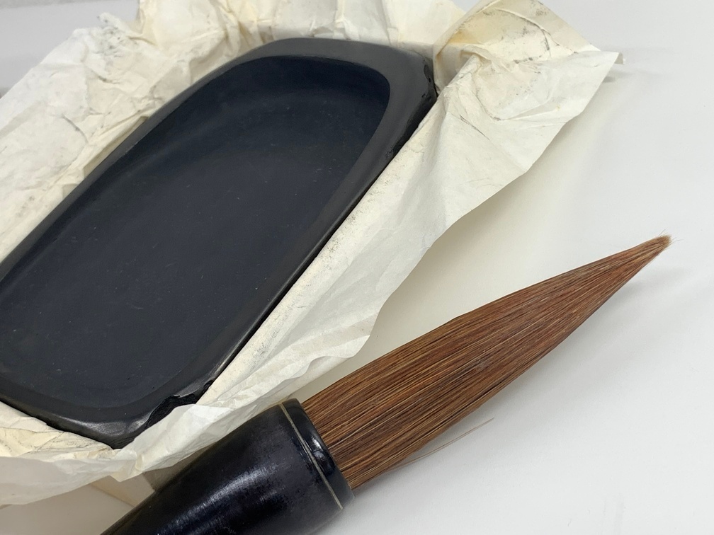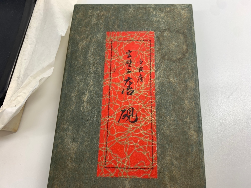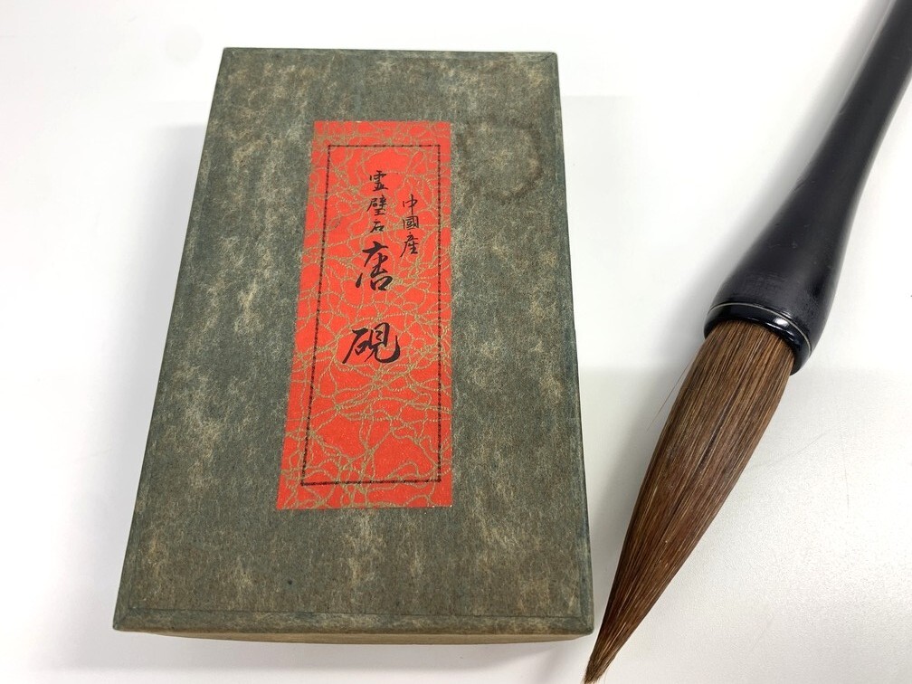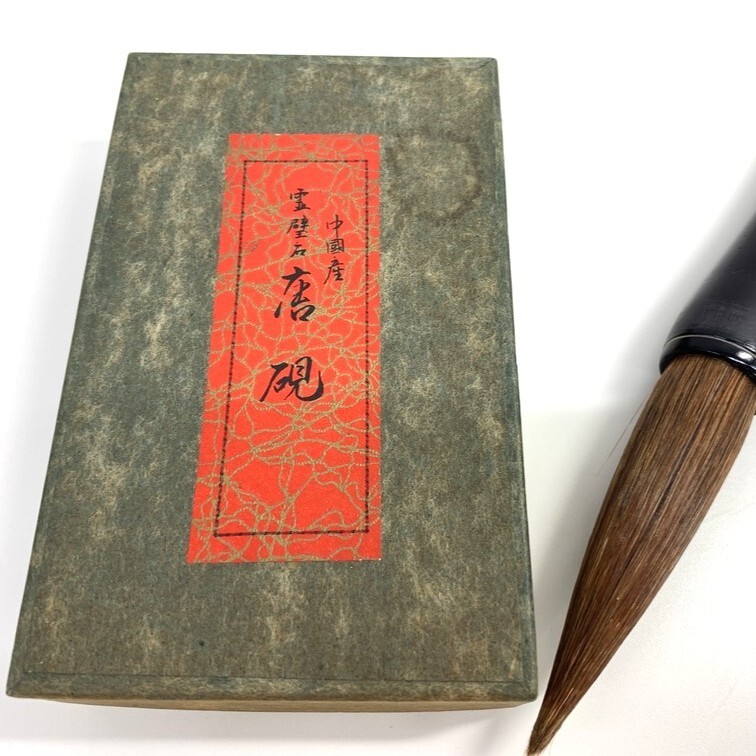 | 商品名 | 唐硯(中国産霊璧石)& 十号木軸筆 耕雲 (玉泉堂) 【硯 中古/筆 未使用品】 すずり 書道具 GIN8-25 |