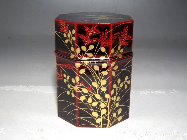 千家十職中村宗哲作の萩に雁八角棗です。 趣ある蒔絵が映える高級感のあるお品です。 蓋裏に表千家十三代即中斎花押が入っています。 底部に針銘があります。 【中村宗哲(なかむらそうてつ) 】 千家十職の塗師。 中村家は、400年近く続く塗師の家。 明治時代以降は茶道具の塗師専業となっている。 現当代は2006年十三代中村宗哲を襲名。 サイズ 直径5.5cm/高さ7.5cm(多少の誤差はお許しください) 状態 一見して疵やヒビ・直しは見られません。 骨董品という事をご勘案頂き、時代経過のスレや、小さな傷がある場合があるかもしれませんのでご承知置きください。 | |||