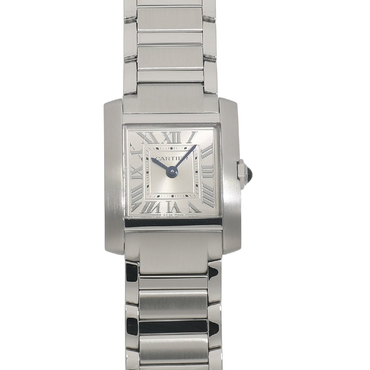 | モデルについて | 2025年の新作 ルイ・カルティエが戦車のキャタピラに着想を得てデザインし1916年に誕生したタンクコレクション。ブランドを代表するアイコン的存在のコレクションとして高い支持を受け続けます。幅広いバリエーションが魅力で、このタンクフランセーズは1996年に誕生し多くの女性の手元を飾ってきたモデルです。腕時計としてはもちろんですが、名門ジュエラーらしいデザイン性の高さからブレスレットとしてアクセサリー感覚で着けられるのも魅力です。カルティエとしては珍しく長らくデザイン変更はありませんでしたが、ダイヤルやブレスレットなどのデザインが一新された新生フランセーズが2023年の新作として発表されました。2025年には裏蓋を留めるネジの改良に伴い型番が変更されました。 |