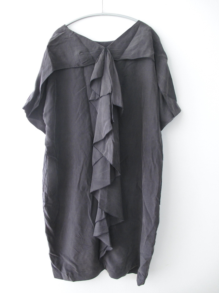 商品名*** ドロワー シルクワンピース 黒 38 状態***中古 説明*** ドロワー シルクのワンピースです。 背中側にリボン風のあしらいが有ります。 色は明るい黒です。 ファスナーなどは無く被る仕様です。 両サイドにポケットが有ります。 何度か洗濯している中古ですので 着用感は有ります。 目立つような汚れはございません。 畳んで保管・梱包しますので 畳みシワはご容赦ください。 サイズ:38 実寸 平置 約 肩幅 --cm 袖丈 --cm 脇下の身幅 52cm 着丈 95cm 素材: シルク 100% |