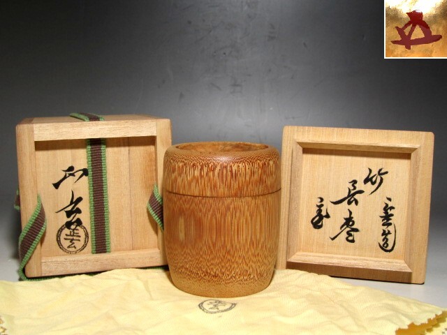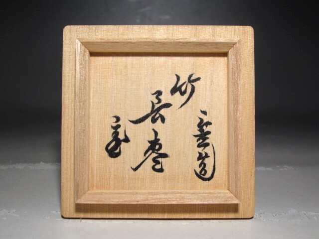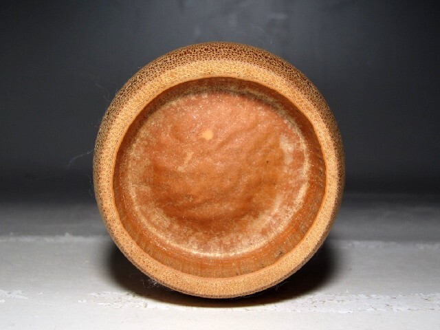 黒田正玄造の竹長棗です。 蓋裏に裏千家十五世鵬雲斎の花押のある見事な出来栄えの逸品です。 【黒田正玄(くろだしょうげん) 1578-1653】 千家十職の一つで、竹細工・柄杓師を務める名工。 小堀遠州に茶湯を学び、日参正玄の異名を得た。 黒田庄兵衛から柄杓作りを伝受し、千家の柄杓師となった。 サイズ 直径5.5cm/高さ7cm(多少の誤差はお許しください) 状態 一見して疵やヒビ・直しは見られません。 骨董品という事をご勘案頂き、時代経過のスレや、小さな傷がある場合があるかもしれませんのでご承知置きください。 | |||