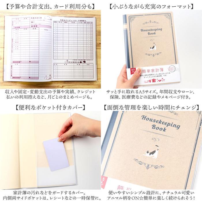 | 商品説明 | ・・【お金の流れをわかりやすく管理】 ・簡単にざっくり、お金の流れを見える化◎可愛らしいデザインの「みんなの文具 簡単家計簿」。 ・【思い立った日からスタート】 ・日付が書かれていないので、お好きな日から始められる!64ページのフリータイプ家計簿。 ・【見開き1ヶ月分のフォーマット】 ・食費など、項目は自由に指定OK。1ヶ月の支出記録を見開きで記録できる◎ ・【予算や合計支出、カード利用分も】 ・収入や固定・変動支出の予算や実績、クレジット払いの利用控えなど、月ごとのまとめページも。 ・【小ぶりながら充実のフォーマット】 ・サッと手に取れるA5サイズ。年間収支やローン、保険、医療費などの記録やメモページ付き。 ・【便利なポケット付きカバー】 ・家計簿の汚れなどをガードするカバー。内側両サイドポケットは、レシートなどの一時保管に。 ・【面倒な管理を楽しい時間にチェンジ】 ・使いやすいシンプル設計に、ナチュラル可愛いアニマル柄をON☆簡単に楽しく続けられそう! ・【フォーマット内容】 ・つけ始めた日・つけ終えた日・使い方・毎日の記録・今月のまとめ・年間収支のまとめ・クレジットカードの覚え書き・ローンの覚え書き・おつきあいの記録(差し上げたもの/頂いたもの)・貯蓄の記録・ボーナスの記録・ローン、借入金の記録。保険の記録。医療費の記録。メモページ。 |