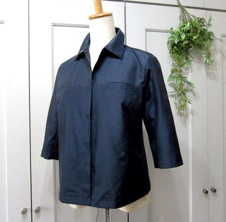 ブランド 特徴 ややしゃり感のある光沢素材 フロントボタンは比翼仕立て 七分袖 両胸ポケット付き