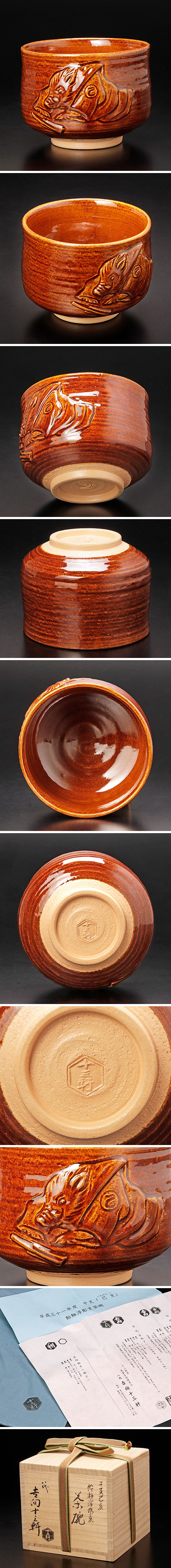 【古美味】八代吉向十三軒 干支己亥飴釉浮彫亥茶碗 茶道具 保証品 |