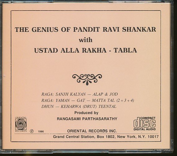 JA987●ラヴィ・シャンカール、アラ・ラカ「The Genius Of Pandit Ravi Shankar」CD /シタール タブラ