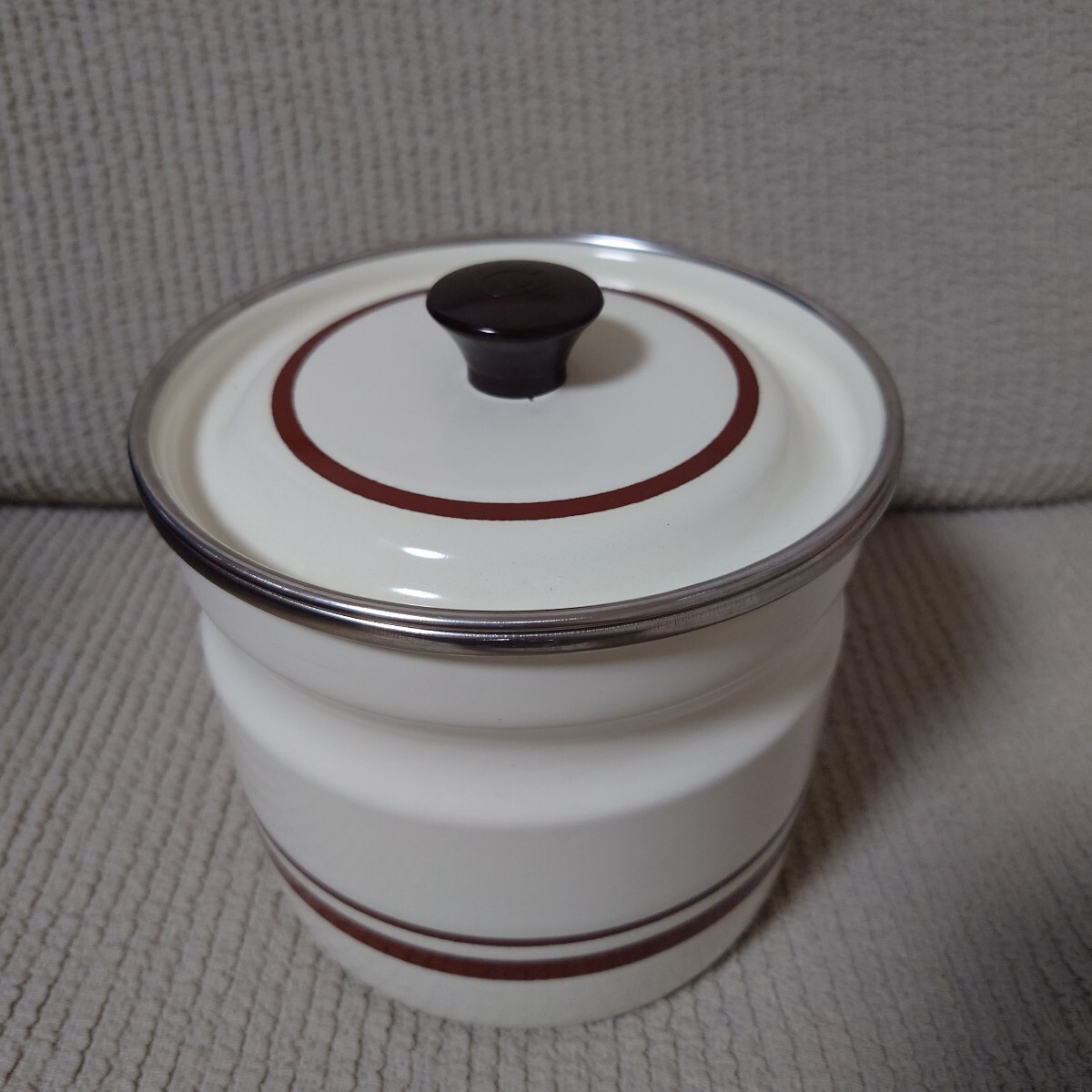昭和レトロ 琺瑯 ホーロー 保存容器 蓋付 長径16センチ [浏览原始页面]