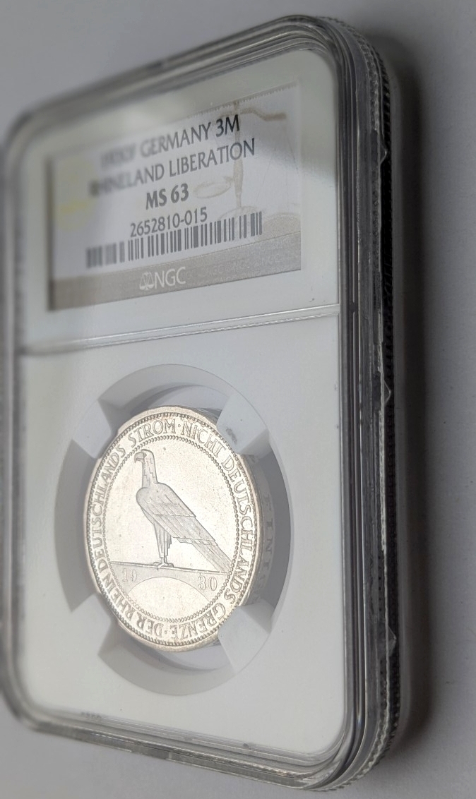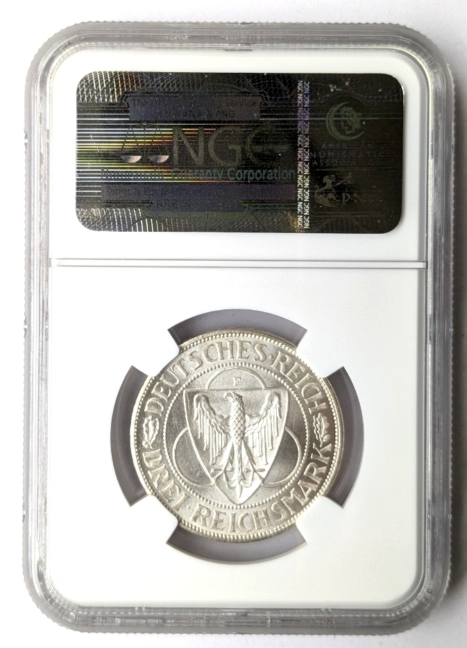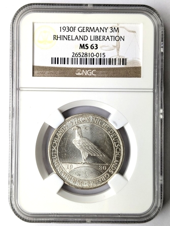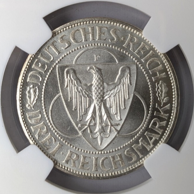 NGC MS63 1930年 ドイツ ワイマール共和国 3マルク 銀貨 ラインラント解放記念 Fミント