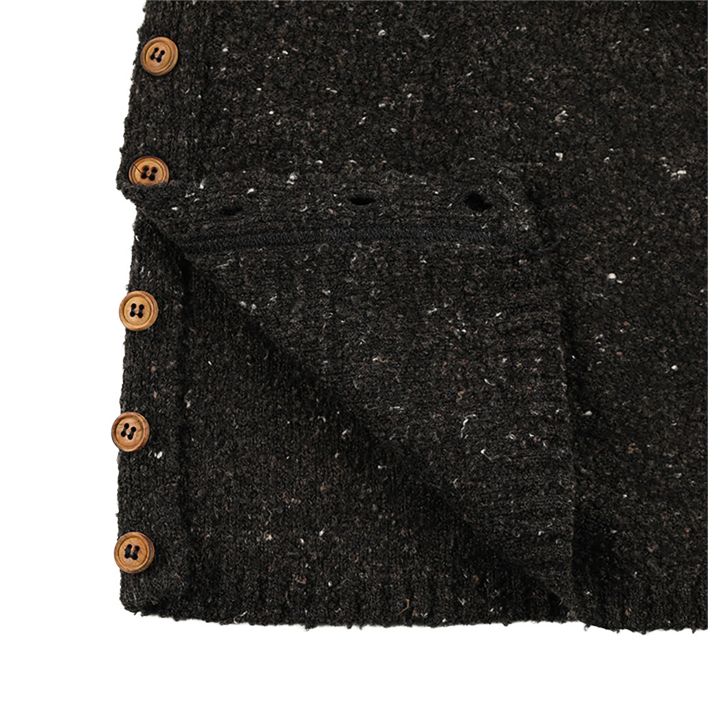 | ブランド・素材・デザイン特徴 | カラーネップの色合いがかわいいニットプルオーバー。 ゆとりのあるシルエットがストレスフリーな着用感を叶えます。 センターケーブル編みで織柄を施しました。 カラーネップと相まってほっこりした大人かわいい印象のひと品です。 サイドにボタンをあしらい、スタイリングに合わせて開けたり出来る優秀アイテム。 |