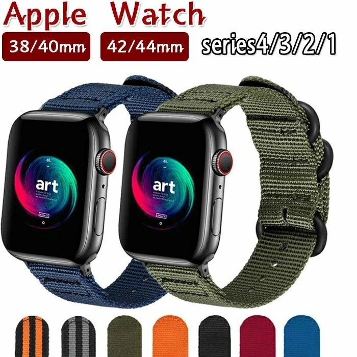 Apple Watch 対応 バンド ナイロンバンドフックファスナー付きスポーツループバンドストラップ交換バンド【ブルー 42MM/44MM】