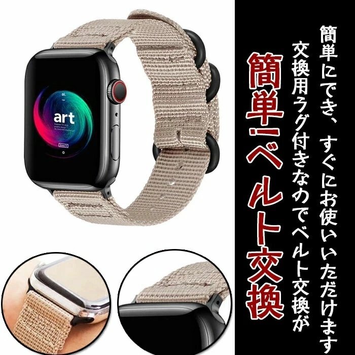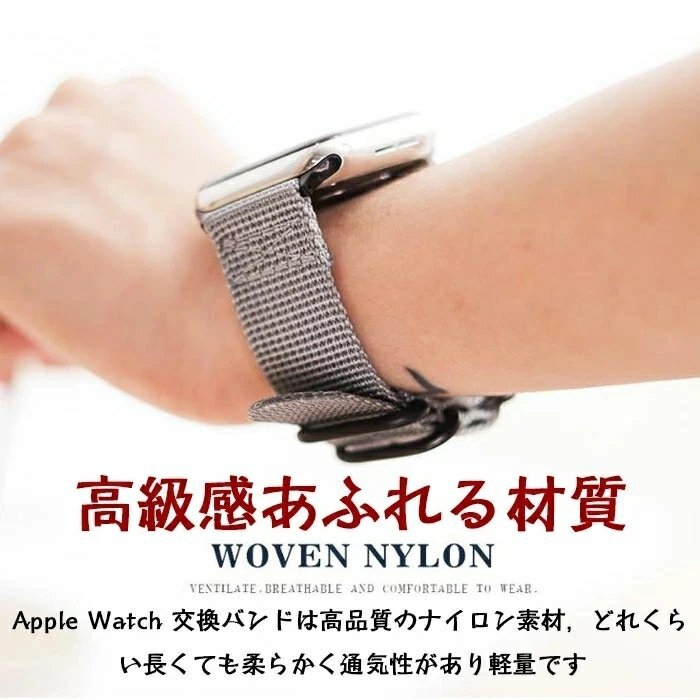 Apple Watch 対応 バンド ナイロンバンドフックファスナー付きスポーツループバンドストラップ交換バンド【ブルー 42MM/44MM】 [浏览原始页面]
