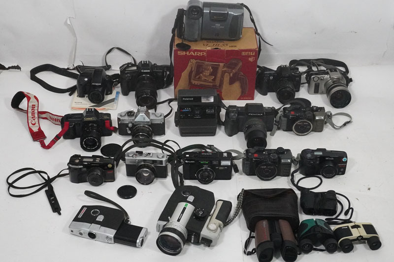 1円~【K580】カメラなどまとめ20点 14kg以上 Canon/キャノン SHARP/シャープ PENTAX/ペンタックス 等 ポラロイド 双眼鏡 コンパクトカメラ