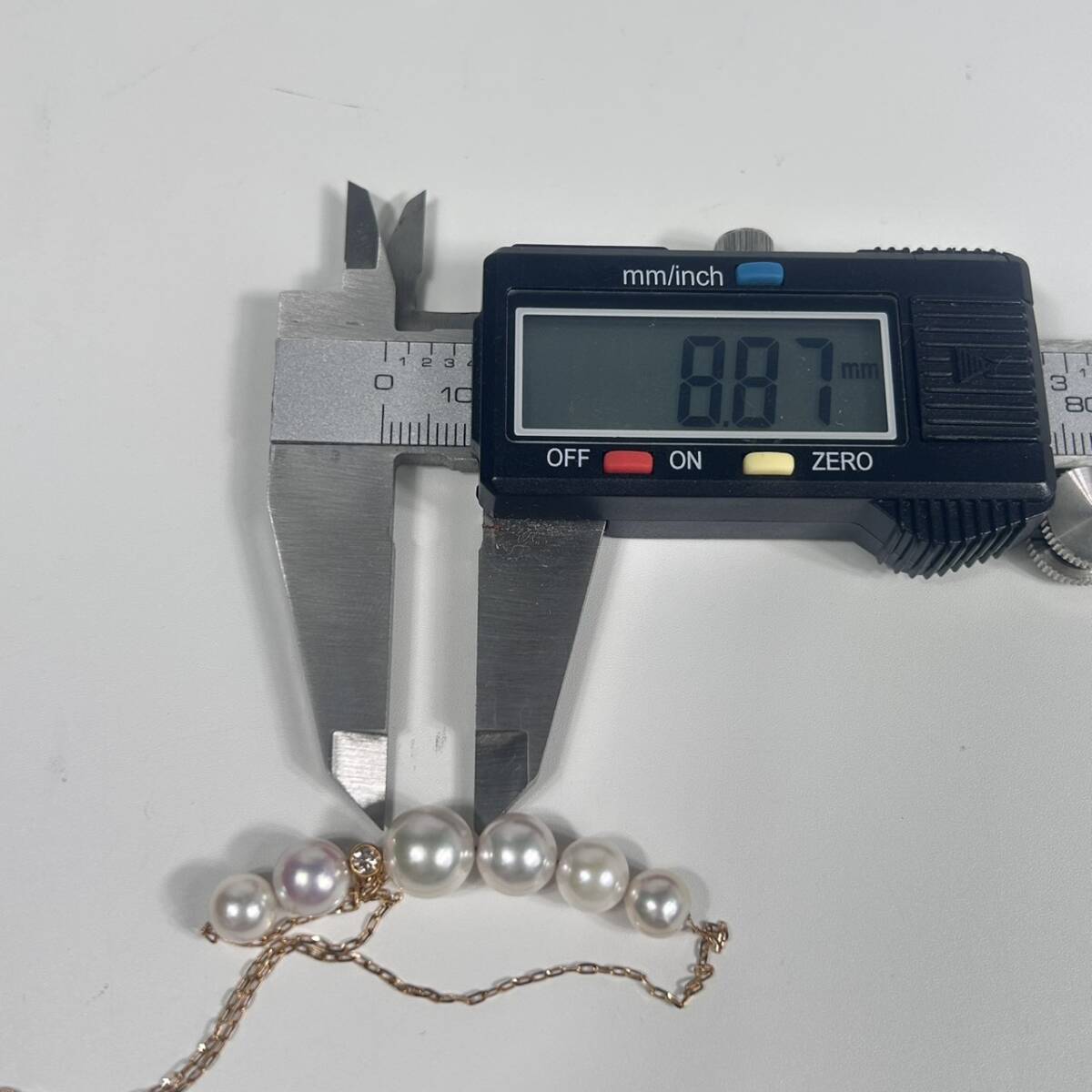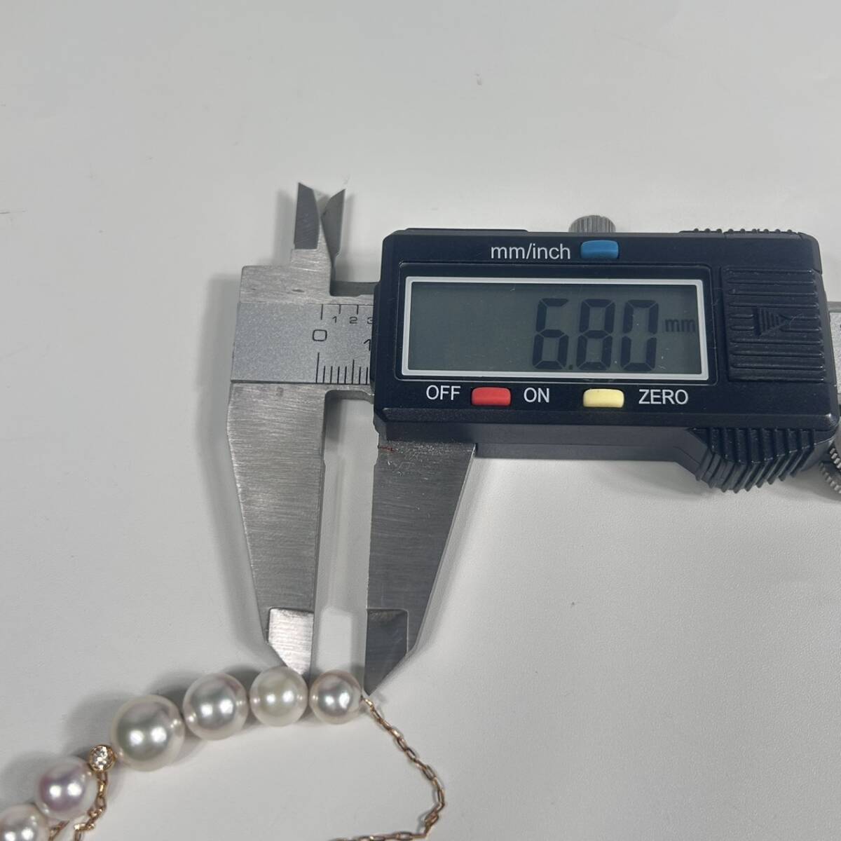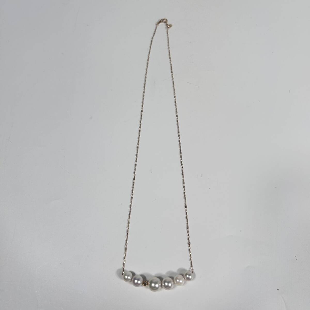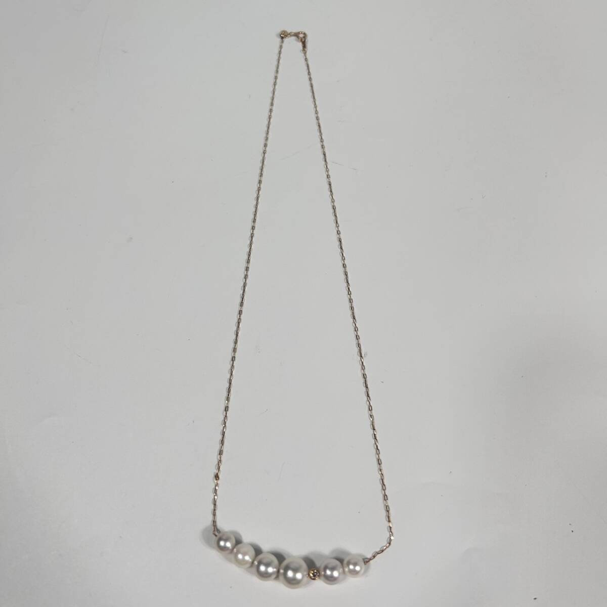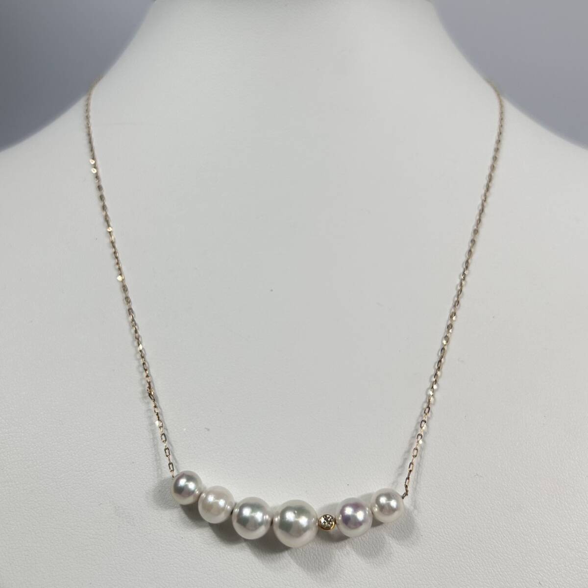 | H7366 K18 YG 真珠ネックレス パール 約6.8-8.87mm D0.1ct 全長約50cm 総重量約5.33g 18金 ダイヤ アクセサリー ジュエリー | ||