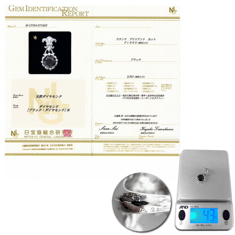 | 商品名 | Pt900 ダイヤモンド ペンダントトップ 百合の紋章ブラック20 【即日発送】 |