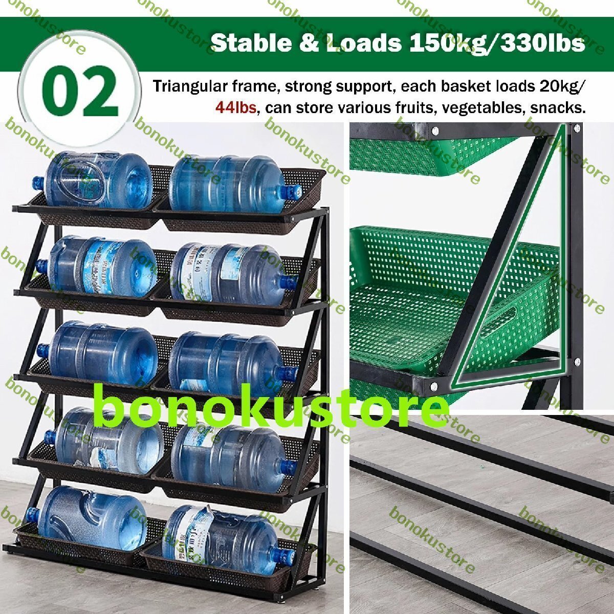 5段キッチン収納ラック フルーツ野菜棚 スチール製 業務用 大容量 スーパーマーケット スナックディスプレイ 小売店/市場 ポテト タマネギ 農産物オーガナイザー (ブラック)