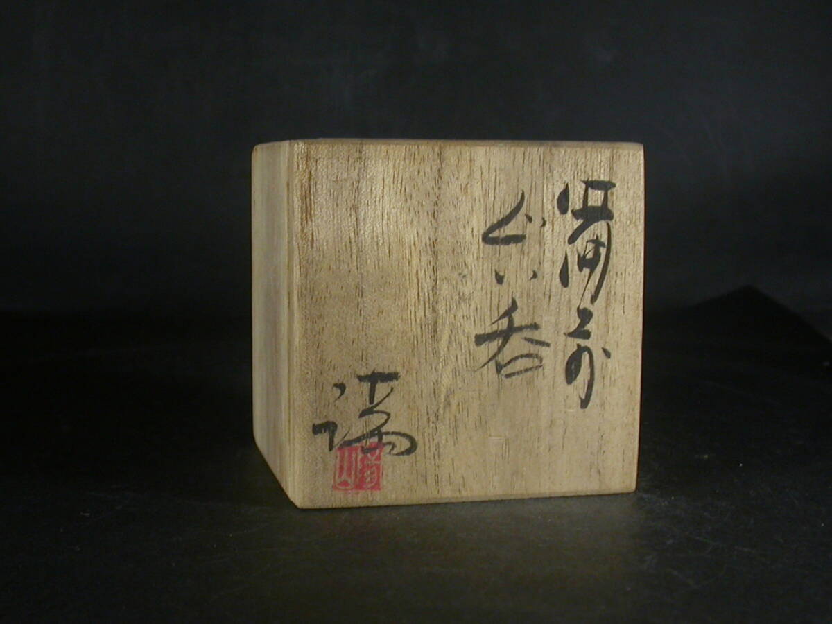 昭和9年備前市生まれ。岡山県無形文化財伊勢崎陽山の長男で人間国宝伊勢崎淳の兄。幼少より父を手伝い陶技を学ぶ。金重陶陽賞他受賞歴多数。岡山県無形文化財。このぐい呑は雰囲気のある作りに、焼けは良く焼き締まった地肌に黄・焦げ茶のゴマが掛かり良い雰囲気の作品となっています。共箱に自然の焼けが有ります。高さ約5.7センチ、径約5.6センチ。共箱付き。| 出价者 | 信用 | 价格 | 时间 |