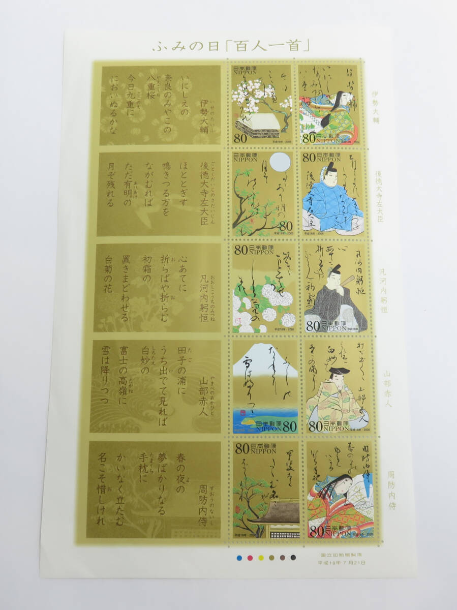 | ☆未使用☆平成18年 ふみの日 百人一首 80円×10 額面800円 切手 シート 記念切手 保管品 |
