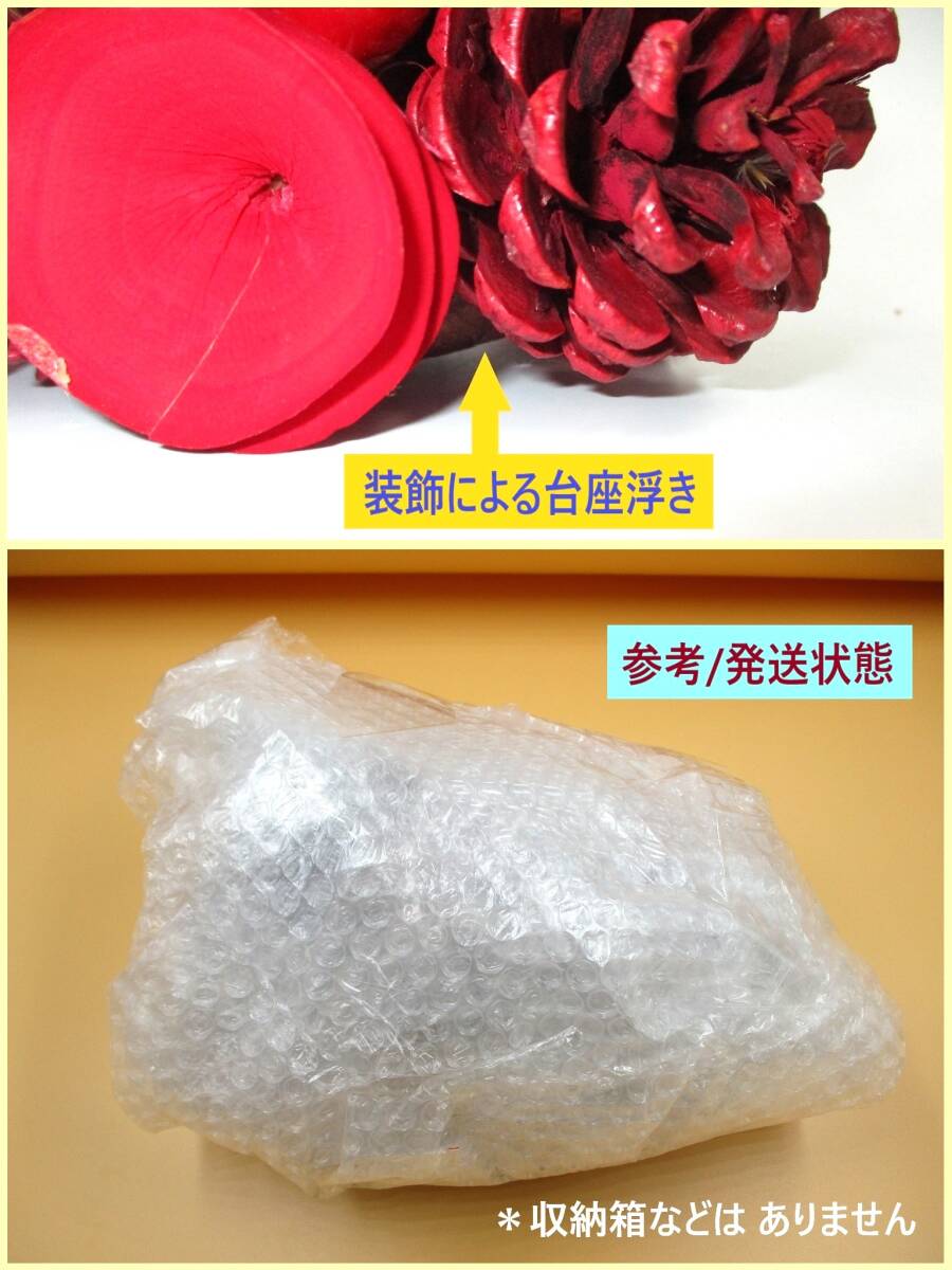 | 「訳あり」扱いの、未使用品。 倉庫での長期保存品です。 コンパクトなサイズながら 落ち着いた色合いで人目をひくツリーです。 赤リンゴや松ぼっくり、 ベリーやお花があしらわれています。 主にドライした自然素材が使用されています。 このまま飾っていただくのはもちろん、 ご自身でお好みにデコレーションして、 オリジナルのクリスマスツリーを 作っていただくのも楽しいと思います。 (参考:画像9) 自然素材のため、長期のご使用に伴い、 色あせ・材質変化等が生じる場合があります。 また、配送時の振動などにより、 造形の多少の崩れ・部品外れ・ 装飾に欠け等が生じる場合がありますが、 この点に関しましては 当方はサポートをいたしません。 あらかじめご了承下さい。 この点より「訳あり」として出品いたします。 以下の商品説明をよくご覧になってから、 ご検討をお願いいたします。 神経質な方、完品をご希望の方は、 御入札をご遠慮ください。 【商品内容】 小さな 可愛い 赤リンゴの クリスマス ツリー ・サイズ: 径15cm・高さ23cm程度 (装飾の付き方により多少の差異あり) *サイズ対比に、 600mlペットボトルを置いています 参考にどうぞ(参考:画像8) ・重量: 200g程度 ・ツリーの主な素材: 木の実・樹皮・ドライフラワー *土台は 発泡スチロール等 *ドライした自然素材を主に使用し すべて1つずつ手作りしています ・その他: 海外製/メーカー等の詳細は不明 ライト等の装飾は付いておりません 装飾品の付き方によりましては 台座が浮いた状態になっている 場合があります(参考:画像10・上) ・備考: 商品配送時の振動・衝撃等で 部品外れ等の破損が生じた場合は 木工用ボンドや手芸用グルーガンで 簡単に修繕可能です *状態は、画像にてご確認ください *実際の商品の色味と異なる場合があります *記載の商品サイズは、 当方の定規にての大まかな寸法です 実際のサイズとは異なる場合があります *画像は 基本的には 今回お送りするお品を撮影していますが 画像9のみ撮影用を使用しています 【状態等】 ・未使用品です。 ・海外製のため、 装飾品の固定・接着剤の付着など、 全体的に作りに粗さがある場合があります。 (参考:画像5・6・7、他) ・装飾品に、キズ・欠け・凹み等がある 場合があります。 ・自然素材のため、長期のご使用に伴い、 色あせ・材質変化等が生じる場合があります。 また、配送時の振動などにより、 造形の多少の崩れ・部品外れ・ 装飾に欠け等が生じる場合がありますが、 この点に関しましては 当方はサポートをいたしません。 ・保管時に使用していた 防虫・殺虫剤の臭いがする場合があります。 苦手な方、気になさる方は、 風通しの良いところで 臭いを飛ばしていただくことをお勧めします。 ・専用の箱などは、ありません。 紙・緩衝材で簡易的に保護し、 再利用箱に入れて発送をいたします。 (参考:発送状態・画像10・下) 以上の点より「訳あり」として出品いたします。 ご承知いただける方のみ、 ノークレーム・ノーリターンにてご検討下さい。 | ||