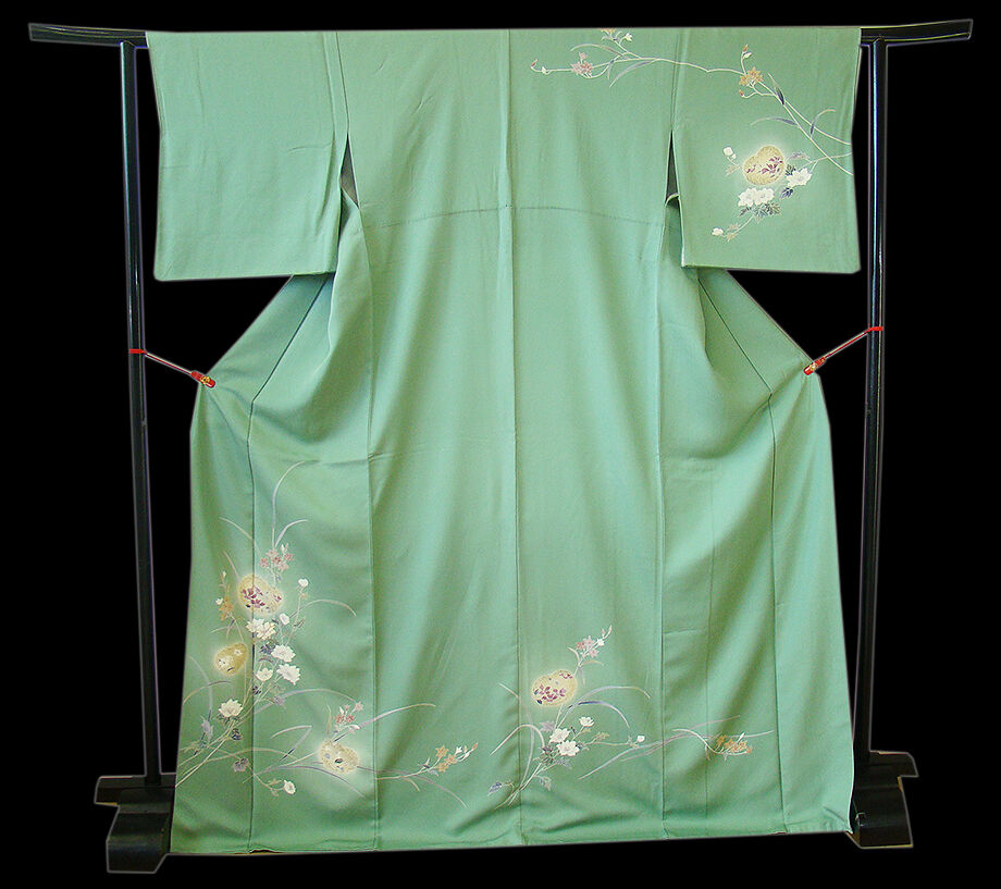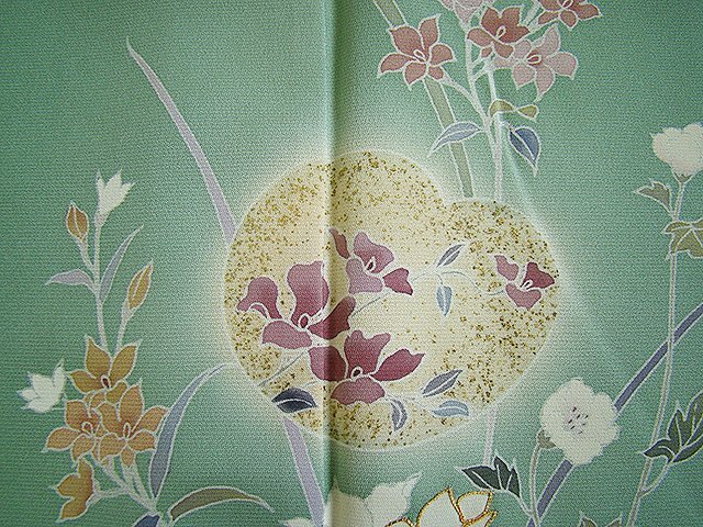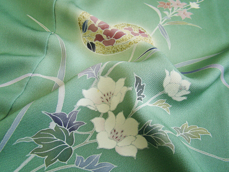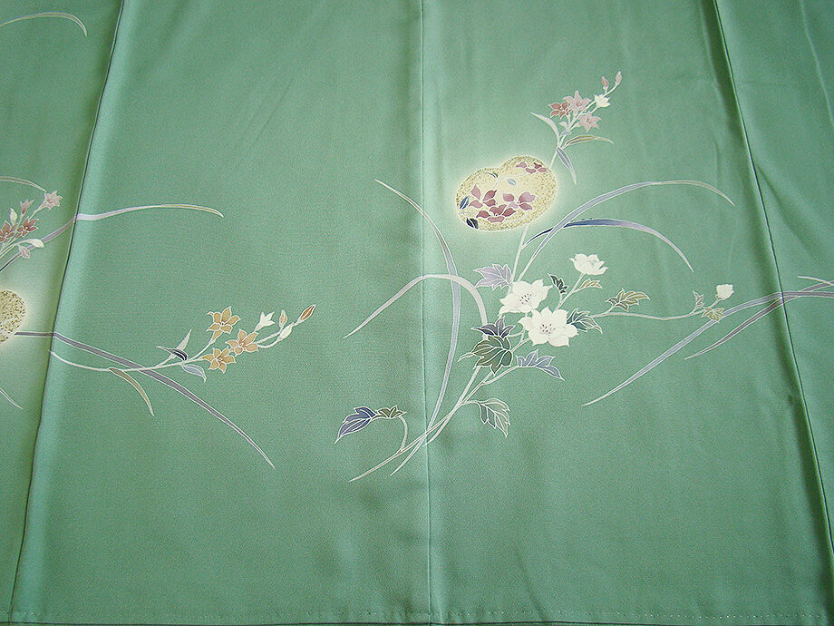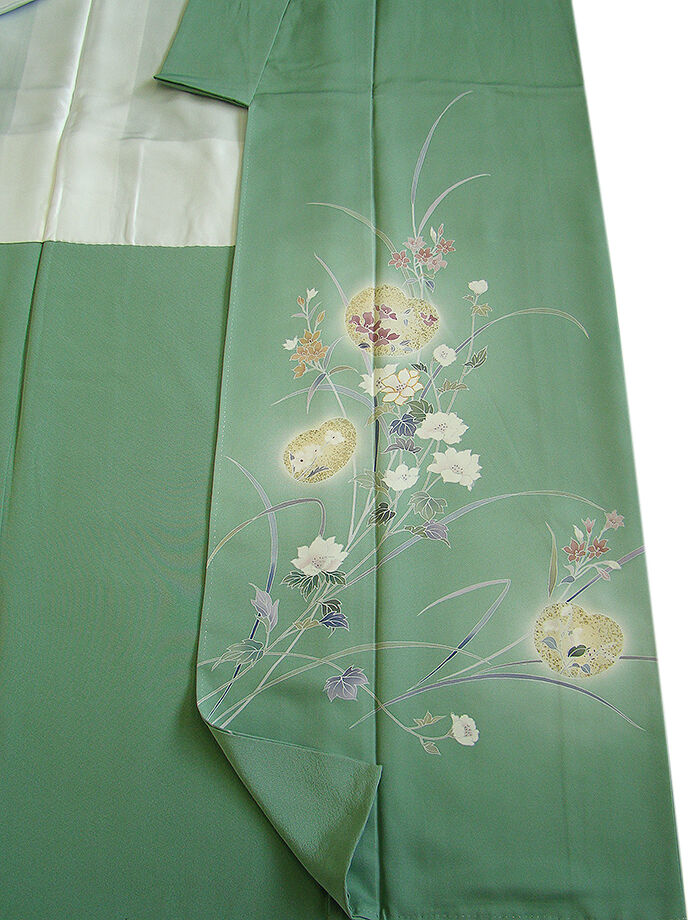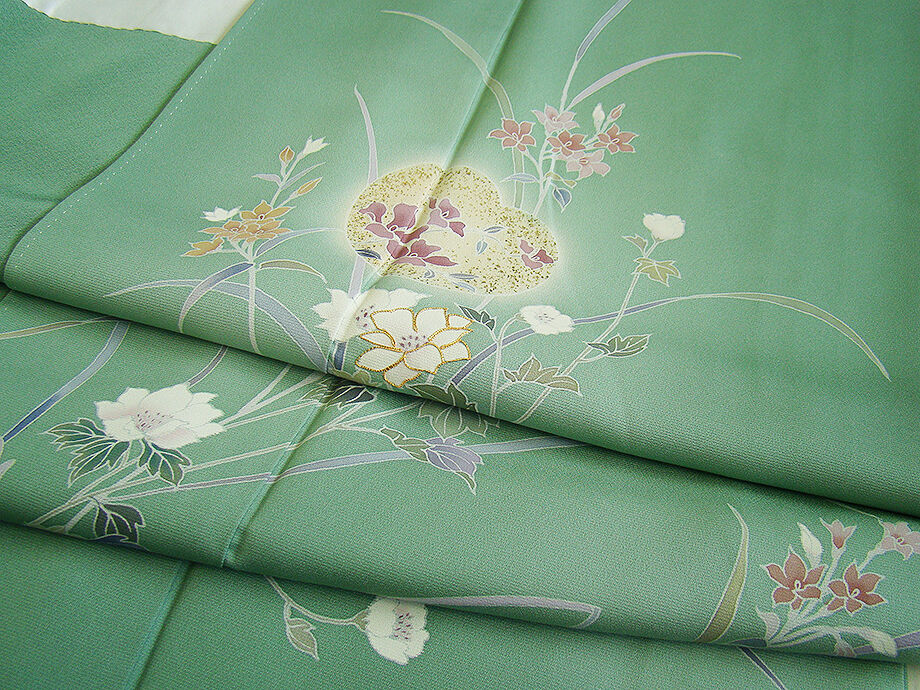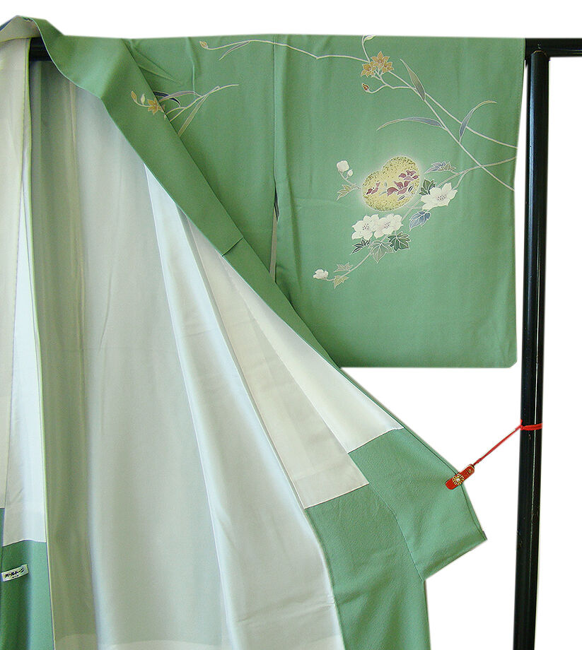 | 商品説明 | こちらのお品は「袷」ですので10月から5月までお召頂ければと思います。 とてもしなやかで柔らかな手触りの着心地良い重めの上質な極上ちりめん地の生地、 若竹色地に白、灰、古代紫、白色等の花木柄の本加工染、 気品に満ち溢れた彩りが正統派のお着物として一枚は欲しい逸品の素敵なお着物です。 八掛は共布(正絹)、幅広い年代の方にお召頂けます。 |