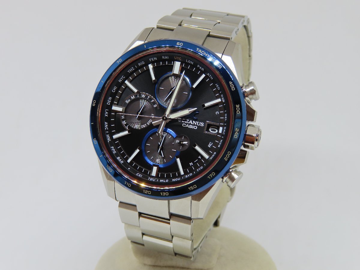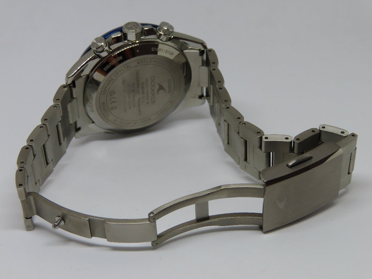 | 【素材】チタン 【文字盤色】ブラック 【機械】ソーラー電波 【Ref.No】OCW-T4000D-1AJF 【ケースサイズ】約42mm(リューズ除く) 【腕回り内寸】約18cm 【動作】正常 【付属品】内箱 |