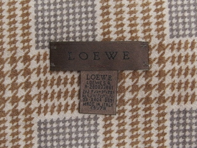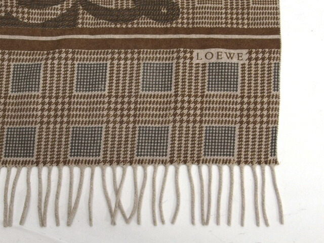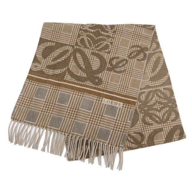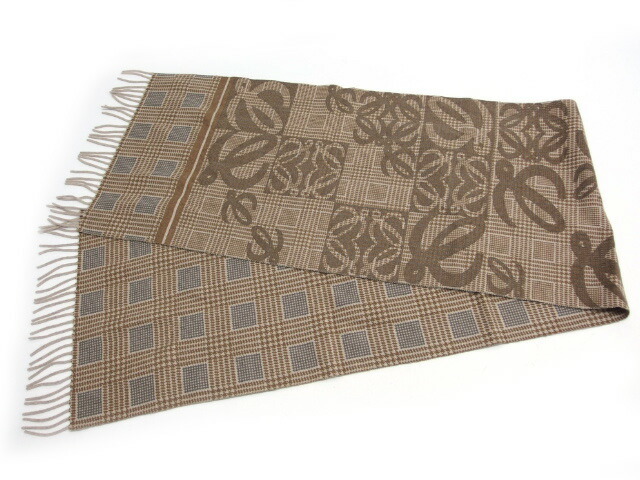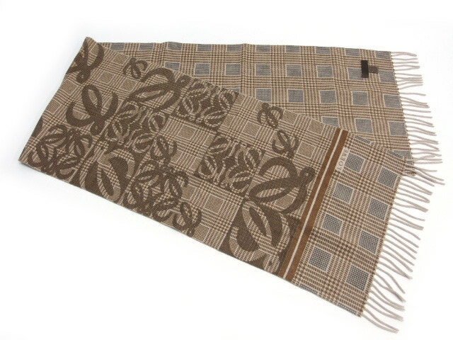 | コメント | ロエベより、チェック柄の上にアナグラムロゴがデザインされた、落ち着いた色合いのマフラーが入荷いたしました。さり気なく市松模様や細かい千鳥格子に見える部分もあり、ほのかに和風テイストも漂う素敵な逸品です。 |