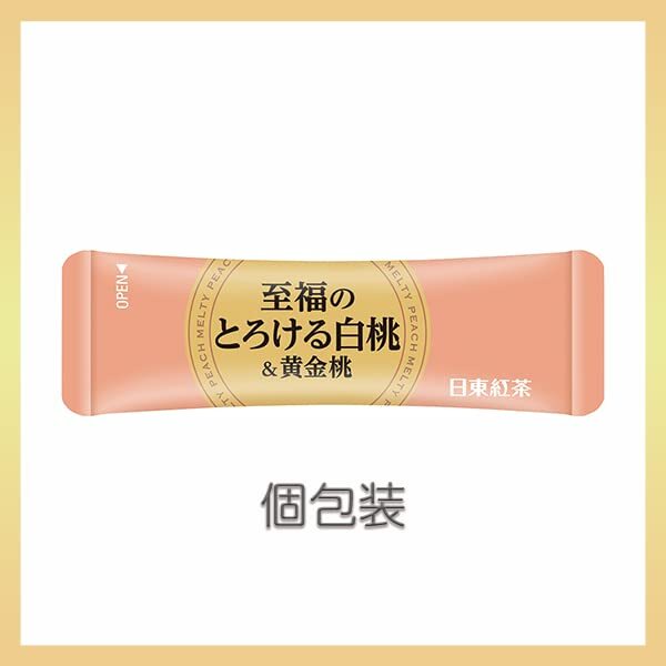 商品紹介 ●白桃と黄金桃の芳醇な香りとジューシーさを再現しました。口に含んだ瞬間に広がる至福のひとときをお楽しみください。 ●国産粉末白桃果汁と国産粉末黄金桃果汁を使用。 ●飲用時果汁1%。1杯あたり150ml仕様。 ●持ち運びにも便利なスティック個包装。 原材料・成分 砂糖(タイ製造)、デキストリン、粉末白桃果汁、粉末黄金桃果汁/添加物:香料、酸味料、増粘剤(キサンタンガム)、甘味料(アセスルファムK、ステビア)、カラメル色素、野菜色素、糊料(グァーガム)