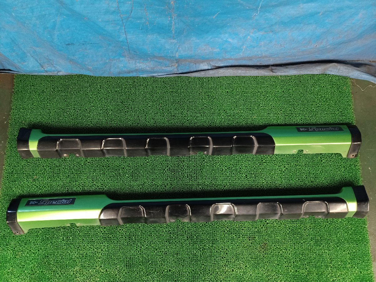 | 商品紹介 | ご覧いただきありがとうございます。 今回出品する品物は、 車名 KEIスペシャル 年式 1999年10月式 型式 GF-HN21S カラー グリーン から取り外しました 純正製 サイドステップ 左右セット になります。 ※画像1枚目に載っているものが全てになりますので ご確認の上 ご入札お願い致します。 取り付けるのに必要な ナット ボルト類は 落札者様で用意してください。 |